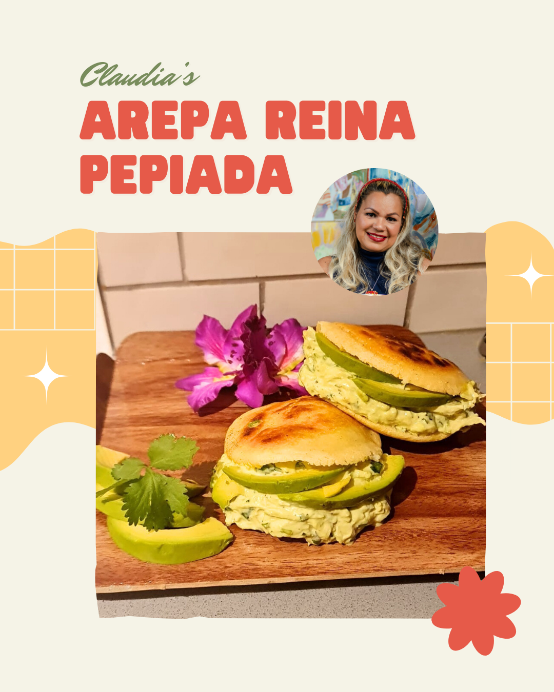 “The Reina Pepiada is one of Venezuela’s most beloved arepas, one that deliciously blends tradition, pride and creativity. This creamy chicken and avocado filling wrapped in a warm corn pocket carries a whole piece of history.
